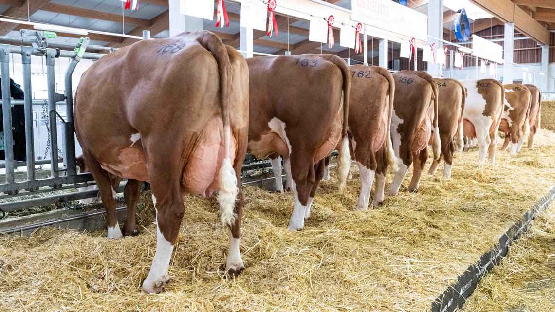 Genostar präsentierte im Rahmen der Bundesfleckviehschau Töchtergruppen von zwei Nachkommen geprüften Vererbern.