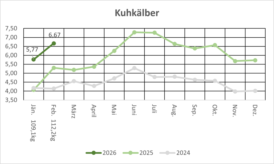 Die Einstellkalbinnen waren qualitativ wieder sehr ansprechend und trafen auf große Nachfrage, deshalb verbesserte sich auch hier der Preis von hohem Niveau ausgehend leicht.