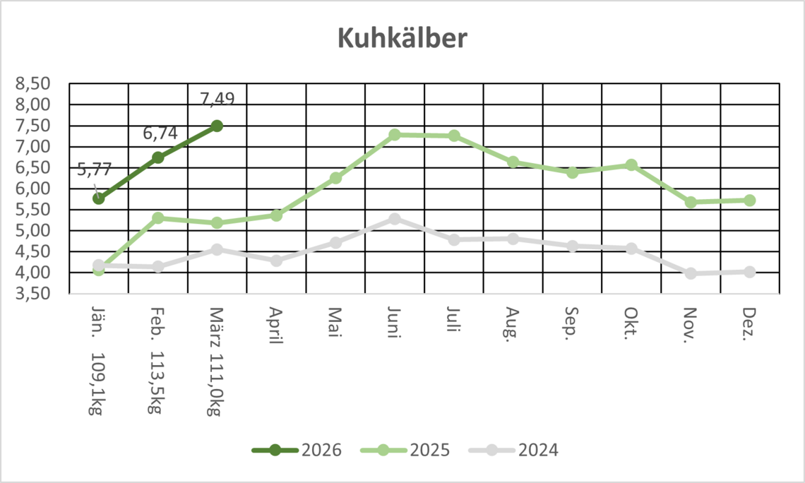 Die Absatzsituation bei den Kuhkälbern war etwas unter Druck. Über alle Kategorien hinweg war die Preisentwicklung rückläufig. Nach Ostern dürfte die Nachfrage wieder anziehen.